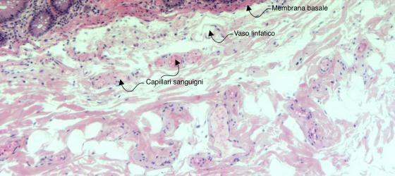 Il tessuto connettivo lasso è caratterizzato dalla presenza di numerose cellule con tipologia variabile e da sostanza amorfa povera di fibre e non particolarmente densa, quindi poco colorabile con le normali colorazioni istologiche.